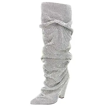 Show moreStep out in style with the BeneModa Women's Closed Pointed Toe Fashion Rhinestones Boots. These stunning over-the-knee high heels are designed for the modern woman who appreciates a blend of elegance and comfort. Crafted from high-quality microfiber for the vamp, luxury pigskin insole, and durable rubber soles, these boots promise both glam and lasting wear. With a heel height of approximately 10cm (3.94 inches), they perfectly elongate your legs and enhance your natural curves, ensuring you feel both confident and chic. The gorgeous rhinestone detailing adds a touch of sparkle, making these boots the perfect statement piece for any outfit.