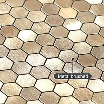BeNice Peel and Stick Backsplash Kitchen Mosaic Tiles Penny Hexagon Small Metal Stickers(10PCS,Gold Champagne)