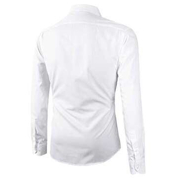 Beninos Mens Slim Fit Solid Point Collar Button Down Dress Shirt (CD01 White, S)
