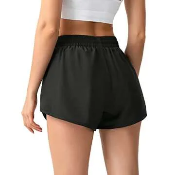 Benirap Womens Shorts Quick-Dry Running Shorts Sports Layer Elastic Waist Workout Athletic Shorts with Zipper Pocket 2"