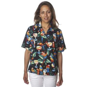 Benny's Women's Parrots and Margaritas Hawaiian Shirt - XL, Black