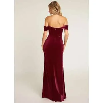 Show more Step into a world of elegance with the benoui Women’s Velvet Corset Formal Wedding Guest Dress. This stunning off-shoulder gown is designed to make you feel both sophisticated and comfortable during special occasions. Crafted from luxurious skin-friendly velvet, this dress not only offers a visually captivating aesthetic but also a soft touch against your skin, ensuring you look and feel your best throughout the day. Featuring a floor-length design complete with an alluring slit, this dress combines classic allure with modern flair, making it a perfect choice for weddings, parties, and formal events. With a built-in bra pad, this dress guarantees the support and shape you desire, allowing you to celebrate with confidence.