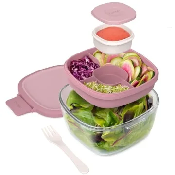 Show moreDiscover the Bentgo Glass All-in-One Salad Container—the perfect blend of convenience and style for salad lovers and meal prep enthusiasts alike! Boasting a generous capacity of 61 ounces, this salad bowl is constructed from durable, BPA-free tempered glass, ensuring that your meals remain fresh and delicious, whether it’s a hearty salad or a warm meal. The unique design features an air-tight stackable construction, making it ideal for those constantly on the go. Say goodbye to soggy greens and messy food bags; with the Bentgo glass salad container, you can prepare your salads the night before and have them ready for a satisfying lunch the next day.