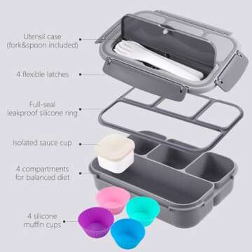 Discover the perfect solution for on-the-go meals with our Bento Box Adult Lunch Box. This versatile 8-in-1 lunch box set is designed for both adults and children, featuring a generous 1200 ml container divided into 4 compartments that keep your food neatly organized. Ideal for school, work, or picnics, it comes equipped with utensils, a sauce cup, and even muffin cups, making it the ultimate lunch companion for anyone who values convenience and style.