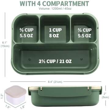 With a generous capacity of 1200ml (40oz) split into four separate compartments, it allows you to pack a variety of delicious fare without the risk of flavors mingling. Whether it's a hearty salad, an assortment of snacks, or your favorite entrees, each dish is presented beautifully. The compartments not only promote portion control but also ensure meals remain fresh and delicious.