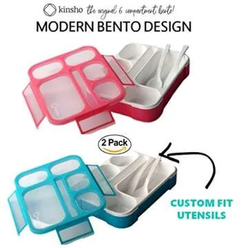 Show more Introducing the ultimate solution for on-the-go meals: the Kinsho Deluxe Bento Lunchboxes! These innovative bento boxes come in a convenient 2-pack, designed meticulously to cater to both children and adults alike. With a thoughtful approach to healthy eating, each box allows you to prepare delicious, customizable, and colorful lunchables that are a delight to behold and eat. Made from high-quality, modern, durable, and eco-friendly materials, these lunchboxes ensure that your meal stays fresh and appealing.