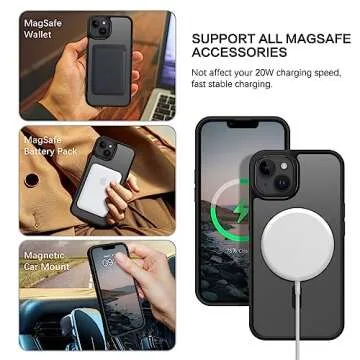Designed specifically for the iPhone 13/14 6.1 inch, this case is compatible with MagSafe accessories. Its built-in magnetic ring aligns with MagSafe chargers, allowing for an effortless and reliable charging experience. Enjoy the freedom of quickly attaching various magnetic accessories such as battery packs, car mounts, and wallets without sacrificing your phone's functionality.