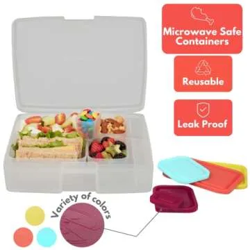 Show more The Bentology Bento Box is the ultimate solution for anyone who values practicality and fun at meal times. Designed with a translucent outer container and five versatile inner lunch containers, this product caters to both kids and adults, making it the perfect lunch companion. Each of the five vibrant, multicolor leak-resistant lids adds a splash of color and personality while ensuring that your snacks and meals stay fresh and secure.