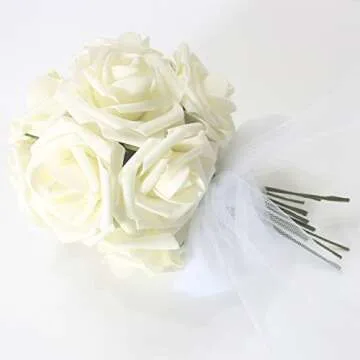 Benvo 50pcs Real Looking Artificial Roses - Ivory for Weddings & Decor