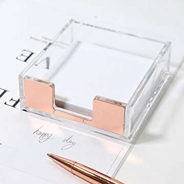 Benxin Acrylic Sticky Note Holder Desk Organizer Decor for 3x3 Sticky Notes Memo (Rose Gold)