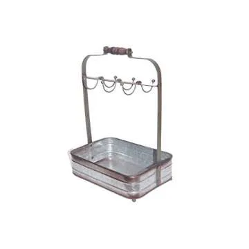 Benzara BM177866 Rustic Galvanized Metal Crockery Holder with Cup Hooks, Gray