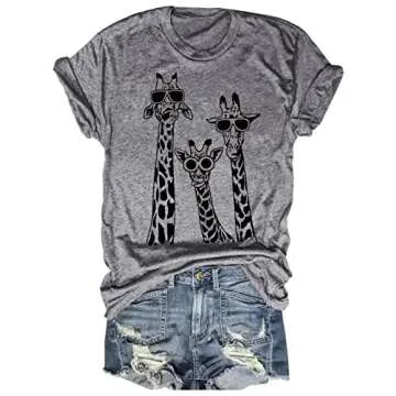Beopjesk Womens Summer Giraffe Printed T-Shirt Funny Cute Animal Graphic Tees Tops