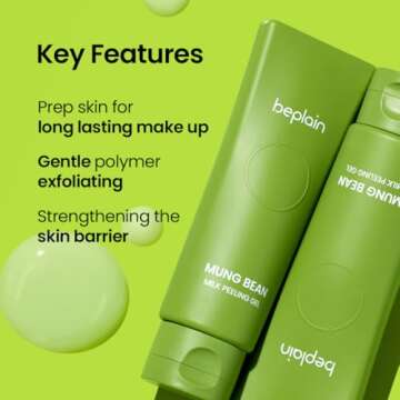Show more Indulge your skin in the extraordinary care it deserves with the beplain Mung Bean Milk Peeling Gel, a unique exfoliating treatment designed to offer gentle yet effective exfoliation. Crafted with innovative peeling polymers instead of traditional cellulose, this product is perfect for those with sensitive skin, ensuring that you achieve a fresh complexion without irritation. Infused with key ingredients such as Mung Bean Soy Milk and Mung Bean Extract, it works to cleanse impurities and supports your skin's moisture barrier, leaving it revitalized and glowing.