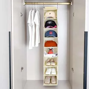 Berdeng Hanging Shoe Organizer for Closet - 8-Shelf Beige Storage Solution