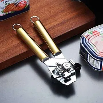 Berglander Stainless Steel Can Opener - Heavy Duty & Elegant Gold Handle