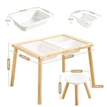 Show moreIntroducing the Beright Kids Table and Chair Set – a perfect blend of functionality and fun for your little ones! This versatile wooden activity table is crafted from high-quality natural pine wood, ensuring it is not only durable but also environmentally friendly. Sized at 29" x 21" x 20", it’s the ideal height for toddlers to sit comfortably for meals, crafts, games, and homework. The set includes two kids' wooden step stools and a variety of storage bins in classic white, enhancing organization while catering to your child’s vibrant creativity. Multiple bin options are available to personalize their space even more!