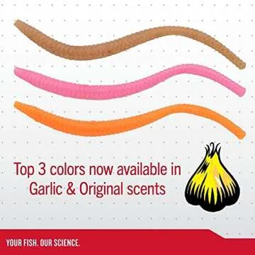 Berkley PowerBait Power Floating Trout Worm Fishing Bait, Pumpkinseed, 3in | 8cm, Irresistible Scent & Flavor, Realistic Worm Profile, Ideal for Trout and More