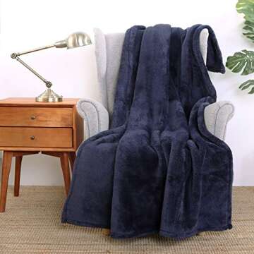 Show more Experience the ultimate in comfort with the Berkshire Blanket Extra-Fluffy Throw Blanket. Crafted from our exclusive Extra-Fluffy fabric, this blanket guarantees an irresistibly soft touch that wraps you in luxurious warmth, perfect for those chilly nights. Measuring a generous 55 inches wide by 70 inches long, this oversized throw ensures that you have ample coverage, making it ideal for cuddling on the couch or keeping warm while reading your favorite book. The beautiful dark blue hue adds a touch of elegance to any room, seamlessly enriching your home decor while providing an inviting atmosphere.