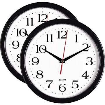 Show moreIntroducing an elegant solution for keeping track of time without the headache of overly loud clocks that can disrupt your peace. This set of 2 wall clocks features large black bold numbers on a crisp white face, making it perfect for easy viewing in any setting. Whether in an office, classroom, bedroom, or bathroom, the sleek design fits seamlessly into any décor.