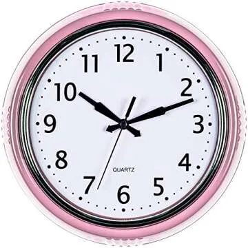 Bernhard Products Retro Wall Clock 9.5 Inch Pink Kitchen 50's Vintage Design Round Silent Non Ticking Battery Operated Quality Quartz for Home Office Baby Nursery Girls Room Classroom, Easy to Read