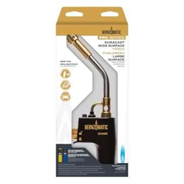 Show moreIntroducing the Bernzomatic® DuraCast® Wide Surface Torch, your ultimate companion for a variety of tasks, whether you're cooking gourmet meals, performing DIY projects, or handling professional metalworking. Engineered with a durable cast aluminum body, this torch is designed for longevity and reliability. Its unique auto start/stop ignition system allows for easy operation, bringing convenience to your fingertips. The heat shrink tip provides a wide flame, making it ideal for heat shrinking, heat treating, and other heat applications, allowing you to get the job done with precision and efficiency.