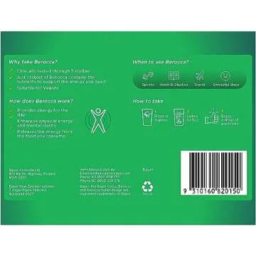 Show moreIntroducing Berocca, a vibrant effervescent tablet designed to invigorate your daily routine with its delightful fizz and essential vitamins. Whether you're facing the morning blues or recovering from a festive night out, Berocca is your go-to source for crucial Vitamin B and C. Crafted with care, this unique formulation not only boosts your energy levels but also enhances your mental focus and combats fatigue. With its wide acceptance in Australia as a staple energy booster, this product is renowned for its quick absorption, delivering nutrients to your body more efficiently.