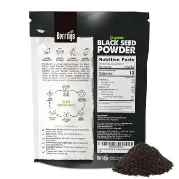 Show more Berrilys Organic Black Seed Powder is the epitome of health and flavor, crafted from the highest quality black cumin seeds. This pure, organic, and natural product is a revelation in the culinary world. Each batch is meticulously sourced to ensure that you receive nothing but the essence of nature in your kitchen. Forget about additives and preservatives; with Berrilys, what you see is what you get—nature's finest ingredients.