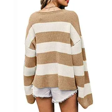 BerryGo Women's Casual Color Block Crew Neck Knitted Pullover Sweater Jumper Tops Light Apricot-S