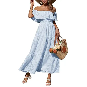Show more Get ready to shine and steal the spotlight in the stunning BerryGo 2022 New Chic Semi Formal Off The Shoulder Maxi Dress! Crafted from lightweight, premium Polyester, this dress promises comfort and elegance, whether you're at a formal gathering or enjoying a sunny day. Its alluring off-the-shoulder design adds a touch of flirtation, while the luxe lace edging and feminine tiered style give it a sophisticated flair. The versatile dress is perfect for any occasion, be it a wedding, cocktail party, or a casual outing with friends.