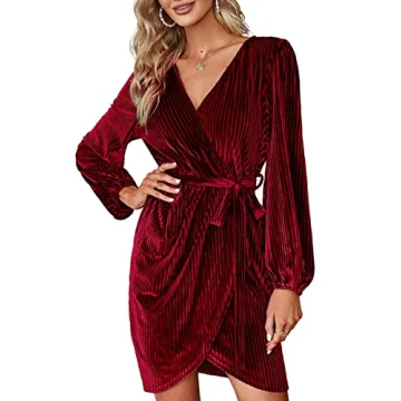 Step into the spotlight with the BerryGo Women's Long Sleeve Wrap Semi Formal Velvet Mini Dress, the ultimate choice for elevating your style at any cocktail party. Crafted from luxurious velvet, this dress not only offers a chic aesthetic but ensures comfort all night long. The high-quality fabric boasts a soft, textured feel against your skin, making it perfect for standing out in any social gathering. With a distinctive deep V-neckline, this dress embodies sophistication, while the intricate...