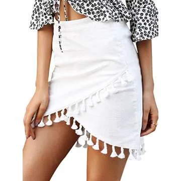 BerryGo Women's Sexy High Waist Tassel Wrap Pencil Mini Skirt Creamy White,M