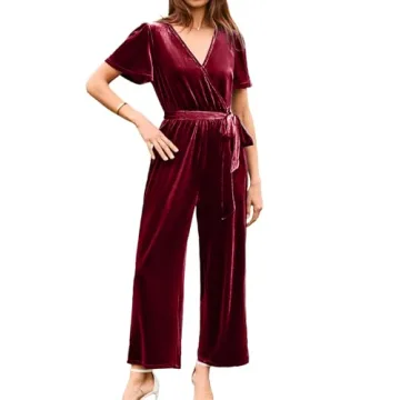 If you're searching for a stylish yet comfortable addition to your wardrobe, the BerryGo Women's Velvet Jumpsuit is the answer to your prayers! This chic jumpsuit is crafted from soft, luxurious velvet fabric, providing an exceptional blend of comfort and elegance. With its carefully designed V-neckline and wide-leg silhouette, it effortlessly transitions from daytime casual to sophisticated evening attire, making it an indispensable piece for any wardrobe.