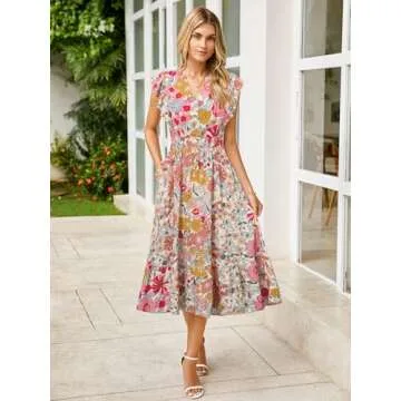 BerryGo Womens Summer Long Dresses Short Sleeve Floral Casual Boho Maxi Beach Dress 2025 Pink Floral S