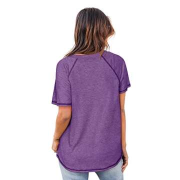 Show moreThe Berryou Short Sleeve Shirts for Women effortlessly combine comfort and style, making them a must-have addition to your wardrobe. This crewneck casual tunic tee is designed for those warm summer days, offering a loose, relaxed fit that enhances your silhouette without compromising on comfort. Made from a soft, breathable fabric, this tee not only looks great but feels fantastic against your skin, making it the perfect choice for any casual outing. The stylish pocket detail adds a touch of practicality and charm, allowing you to keep small essentials close at hand. Available in a vibrant purple, it radiates a cheerful vibe that's versatile enough to pair with leggings, jeans, or shorts for a chic yet laid-back look.