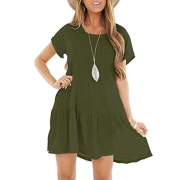 The Berryou Women Short Sleeve Pocket Casual Plain Flexible Loose Ruffle Swing T-Shirt Dress is more than just a dress; it’s an experience in comfort and style. Embrace your curves with a design that flatters your silhouette while providing a relaxed fit for everyday wear. The soft material cradles your body, so you can move with confidence, whether during a fun outing or a serene day at home. Its practical pockets ensure that you remain stylish and functional. You will cherish the freedom of effortlessly transitioning from day to evening with this single, beautifully crafted piece.