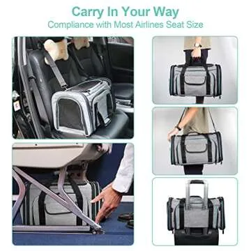 Show moreMeet the ultimate travel companion for your furry friend, the BERTASCHE Cat Carrier. Designed to cater to both comfort and convenience, this pet carrier is perfect for cats, puppies, and small dogs weighing up to 14lbs (6kg). With its roomy dimensions of 19.3"L x 11"W x 11"H, you can expand it to an impressive 41.3"L x 28.2"W x 11"H with four mesh windows, ensuring your pet has plenty of space to move around. The carrier is not just spacious; its airline-approved design allows you to take it on flights, fitting comfortably under most airline seats, making trips to the vet or adventurous getaways a breeze.