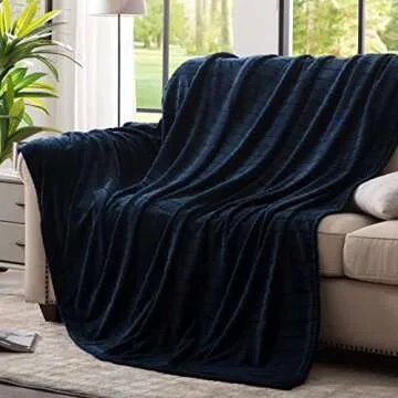 Bertte Plush Throw Blanket: Super Soft & Fuzzy | Cozy Luxury Decorative Stripe, 50"x60", Navy