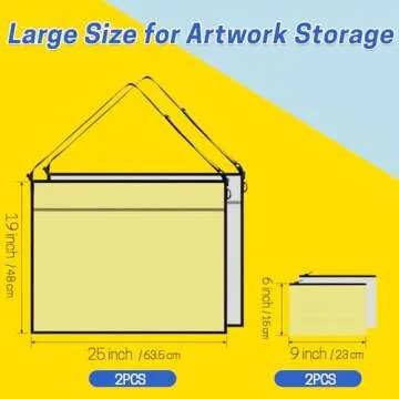 Show more Introducing the perfect solution for artists, teachers, and crafters alike! Our Large Art Supply Storage Bags are designed to streamline your organization while protecting your invaluable artwork. Crafted from heavy-duty PVC material, these bags offer durability and peace of mind, ensuring your work remains safe from dirt, dust, and moisture. Measuring an impressive 19 x 25 inches for the large bag and 9 x 6 inches for the small one, they provide ample space for a variety of art supplies—be it canvases, posters, or even quilting projects.