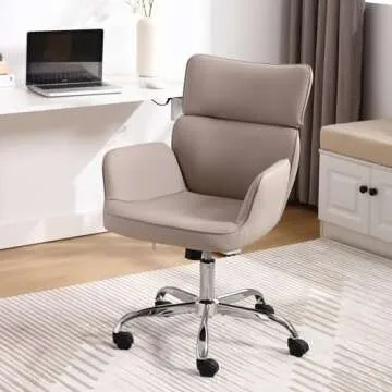 BERYTH Home Office Chair with Wheels, Adjustable Height Swivel Mid-Back Armchair Task Chair, Modern PU Leather Ergonomic Tilt Computer Desk Vanity Chair for Office, Study Room(PU LightGrey)
