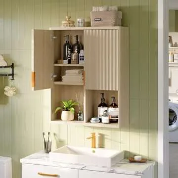 Besiter Fluted Bathroom Wall Cabinet Over The Toilet Storage, 23"x 29" Medicine Cabinet with Adjustable Shelf, Laundry Cabinet Wall Mounted and Kitchen Storage Cabinet(Natural Oak)