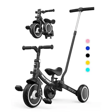 Show more Introducing the besrey 7-in-1 Toddler Bike, a versatile and innovative bike designed to grow alongside your child from 1 to 5 years old. Perfect for both boys and girls, this foldable kids' push trike seamlessly transitions between various riding modes including tricycle, balance bike, and baby walker, providing endless enjoyment and adaptability. Crafted from durable aviation-grade aluminum, the bike ensures a long-lasting fun experience for your little adventurer. The adjustable parent steering push handle extends from 29.9" to 40.6", allowing for comfortable control regardless of the adult's height, making park outings and daily rides a breeze.