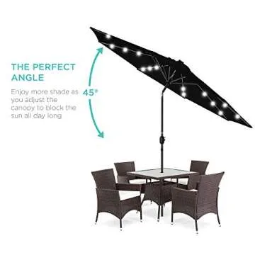 Show moreIlluminate your outdoor space with the Best Choice Products 10ft Solar Polyester LED Lighted Patio Umbrella. This stylish and functional umbrella combines cutting-edge solar technology with durable design elements, making it the perfect addition to your patio, garden, or poolside. Equipped with 24 built-in solar-powered LED lights, this vibrant umbrella not only shields you from the sun during the day but also transforms your night-time gatherings into enchanting experiences, shining bright for 6-7 hours after a full charge. Whether you're hosting a summer barbecue or enjoying a quiet evening outdoors, let this umbrella enhance your ambiance and comfort.