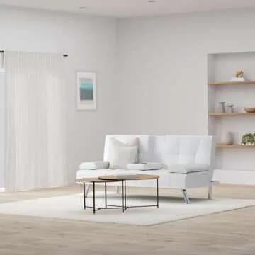 Best Choice Products Faux Leather Upholstered Modern Convertible Futon, Adjustable Folding Sofa Bed, Guest Bed w/Removable Armrests - White