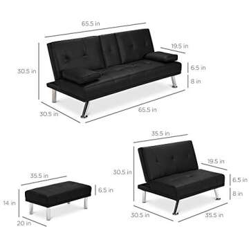 Show moreTransform your living area with the Best Choice Products Faux Leather Upholstery 3-Piece Modular Modern Living Room Sofa Sectional Furniture Set. This stylish and innovative furniture solution combines functionality with modern design, making it perfect for small spaces. It comes with a convertible feature, allowing you to easily switch between a comfortable sectional sofa and versatile futon beds. The sleek black faux leather upholstery complements any decor, while the lightweight design ensures easy maneuverability. Assembly is a breeze, with everything you need included, so you can set it up in less than 10 minutes.