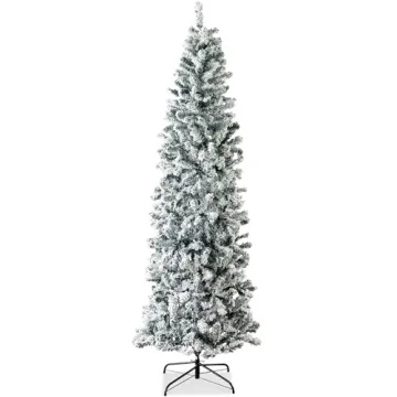 Show more Transform your home into a captivating winter wonderland with the Best Choice Products Flocked Pencil Christmas Tree. Standing at an impressive 7.5 feet tall, this slim artificial holiday decoration combines elegance and practicality to fit seamlessly into smaller spaces without compromising on that lush, full tree appearance synonymous with a warm, festive ambiance. Crafted from high-quality PVC for a realistic look and enhanced with a stunning snow-flocked finish, this tree creates an inviting atmosphere perfect for family gatherings or holiday celebrations. Imagine the twinkling lights and colorful ornaments adorning this tree as it becomes the centerpiece of your festive decorations!