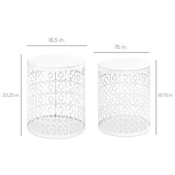 Transform your living space with the Best Choice Products Metal Accent Table Set, a stylish and functional addition that seamlessly blends elegance and utility. These decorative round end tables are perfect for both modern and traditional interiors, featuring a chic white finish that enhances any room's decor. The unique design showcases countless diamond and hexagon shapes that interconnect around each table, creating eye-catching patterns that captivate and charm. With...