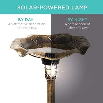 When compared to other bird baths, the Best Choice Products Solar Lighted Bird Bath stands out due to its elegant design and added functionality. Many competitors focus solely on being a bird bath without additional features. This product not only serves as a bird bath but also integrates a solar-powered light and a planter, making it a multi-functional addition to your garden. The high-density polyresin material ensures durability and low maintenance while competitors often use less durable materials that may fade or crack over time.
