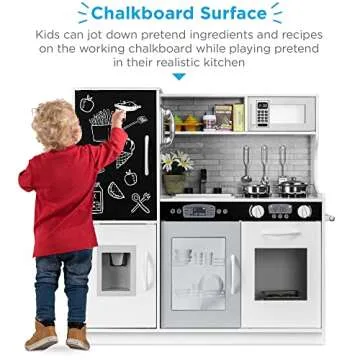 This extensive kitchen playset promotes imaginative play where young ones can whip up gourmet dinners or bake delectable pastries. The kitchen comes complete with a chalkboard surface for them to jot down their recipes or notes, encouraging literacy and organizational skills right from an early age. Enjoy hours of engagement as kids interact with the set's numerous components.