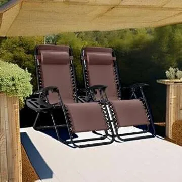 Best Choice Products Set of 2 Adjustable Steel Mesh Zero Gravity Lounge Chair Recliners w/Pillows and Cup Holder Trays - Brown