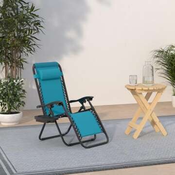 Best Choice Products Set of 2 Adjustable Steel Mesh Zero Gravity Lounge Chair Recliners w/Pillows and Cup Holder Trays - Peacock Blue